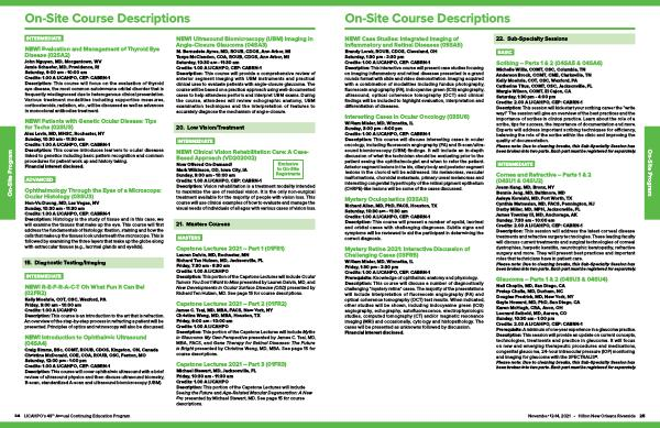 M . Bernadete Ayres , MD , ROUB , CDOS , Ann Arbor , MI Tanya McClendon , COA , ROUB , CDOS , Ann Arbor , MI Saturday , 10:30 am - 11:30 am Credits : 1.00 A IJCAHPO , CEP : CABRN-1 Description : This course will provide a comprehensive review of anterior segment imaging with UBM instruments and practical clinical uses to evaluate patients with angle-closure glaucoma . The course will be based on a practical approach using well-documented cases to help attendees perform and interpret UBM exams . During the course , attendees will review echographic anatomy , UBM examination techniques and the interpretation of features to accurately diagnose the mechanism of angle-closure .