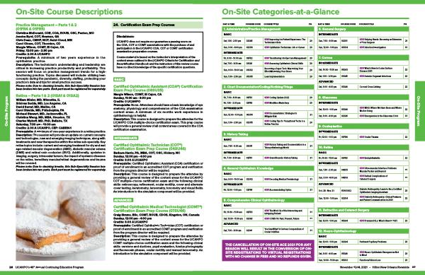 Sun , 3:00 - 4:00 pm 02SU6 NEW ! Ophthalmic Technician : Job or Career 20 INTERMEDIATE Fri , 9:00 - 10:00 am 03FR2 NEW ! Transitioning into Eye Care Management 20 Sat , 7:30 - 8:30 am 03SA1 NEW ! Assessing Ophthalmic Clinical Skills 20