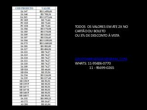 TODOS OS VALORES EM ATE 2X NO CARTÃO OU BOLETO OU 3% DE DESCONTO Á VISTA GRUPOAMEVENDAS@GMAIL.COM WHATS: 11-95606-0770 11 - 95699-0265