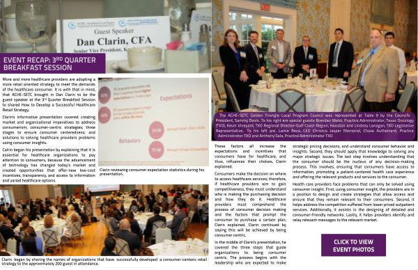 President, Sammy Davis. To his right are special guests Brendan Webb, Practice Administrator, Texas Oncology