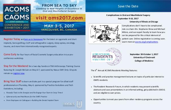 Register Today and join us in Vancouver for the latest on zygomatic and short implants, bone grafting, CLCP and orthognathic surgery, sleep apnea, oncology, trauma, and more from internationally-recognized experts.