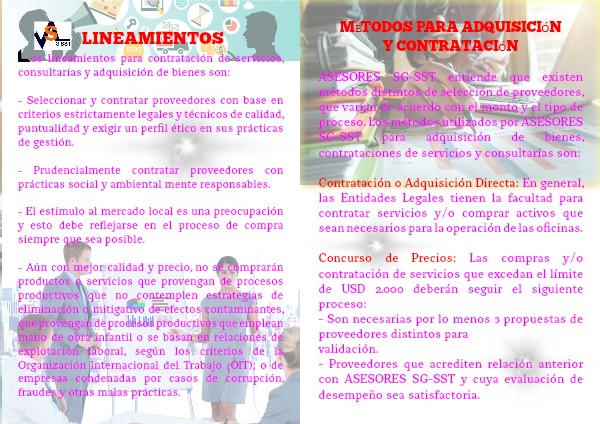 Los lineamientos para contratación de servicios, consultarías y adquisición de bienes son: