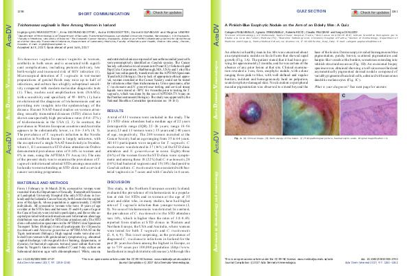 This study, in the Northern European country Iceland, evaluated the prevalence of trichomoniasis in a population at risk for STDs and in women at the age of 35 years and older who, in many studies, have had higher rates of T. vaginalis infection than younger women( 3, 8). No case of trichomoniasis was detected. In contrast, the prevalence of C. trachomatis in the STD attendees was 16 %, which is higher than the rates of 3.8 – 8.6 % reported from studies at STD clinics in Western and Northern Europe, the USA and Australia, where women were tested for both T. vaginalis and C. trachomatis( 2, 4, 6, 9). This is not surprising, as the prevalence of diagnosed C. trachomatis infections in Iceland for the past 20 years has been among the highest in Europe, or up to 739 cases per 100,000 population( http:// www. landlaeknir. is / english / statistics / diseases /). Although this doi: 10.2340 / 00015555-2747 Acta Derm Venereol 2017; 97: 1258 – 1260