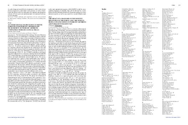Introduction: Psoriatic arthritis( PsA) is a chronic inflammatory joint disease that, if untreated, can cause joint destruction and disability. The knowledge about PsA among both public and healthcare providers is limited, leading to underdiagnosis and undertreatment. To raise awareness of PsA and gather relevant data, the Swedish Psoriasis Association and the Swedish Rheumatism Association initiated a web-based educational campaign which also featured a survey on healthcare experiences and Quality of Life. Objectives: The purpose of the survey was to identify the gaps in the healthcare provided for individuals diagnosed with PsA and individuals with psoriasis and joint pain consistent with a PsA diagnosis, as well as understanding the impact on QoL for both groups. Method: The survey consisted of two questionnaires, one for individuals diagnosed with PsA, group A, and one for individuals diagnosed with psoriasis who have joint pain consistent with a PsA diagnosis( using CASPAR criteria), group B. The survey was open from April 6 2017 to March 31 2018. One section of the survey focussed on time to diagnosis and perception of healthcare. Limitations: self-reported diagnosis, possible to take survey multiple times using different devices. Results: Both groups had seen multiple doctors for their joint pain. In group A 60 %( n = 1 132) had seen > 4 doctors, with 11 % reporting having seen > 10. In group B 52.5 %( n = 824) had seen > 4 doctors, with 8 % having seen > 10. In group A nearly 51 %( n = 1 211) reported having had joint pain / symptoms for at least 1 year before receiving a diagnosis, with 12 % waiting > 10 years. In group B 91 %( n = 1 872) reported having had joint pain / symptoms for at least 1 year, with 35 % at > 10 years. Perception of healthcare differed greatly between the groups. In group A over half( n = 1 273) reported that their perception of healthcare improved or improved greatly after receiving their PsA diagnosis. In group B nearly 78 %( n = 1 227) reported being dissatisfied or very dissatisfied with the care they receive. Conclusions: The results show that the group with a PsA diagnosis have a much more positive perception of the treatment and care they receive than the group without a diagnosis. Interestingly, in another part of the survey group B reported their psoriasis having a low to medium impact on their lives, indicating that their psoriasis may be mild enough to be treated in a primary care setting only. In the past few years there have been extensive efforts put into educating Swedish dermatologists on recognizing early signs of PsA, but steps should also be taken to raise awareness of psoriasisassociated joint pain among general practitioners to ensure timely referral to specialist care. Disclosure: Project platform and consultancy services were provided by health portal company Netdoktor. The project received funding from