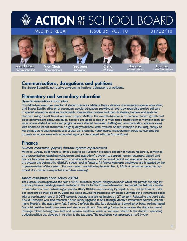 Anoka-Hennepin was also awarded a bond rating upgrade to Aa1 through Moody’s Investment Service. Accord-