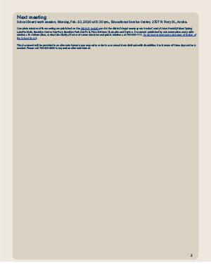 School Board work session, Monday, Feb. 10, 2020 at 5:30 pm., Educational Service Center, 2727 N Ferry St., Anoka.