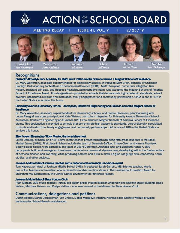 Action of the School Board Action of the School Board 02/25/2019