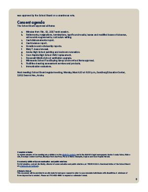 Next meeting: School Board regular meeting, Monday, March 20 at 6:30 p. m., Sandburg Education Center, 1902 Second Ave., Anoka.