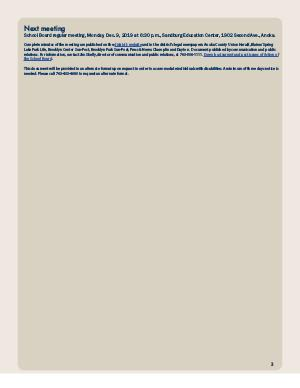 School Board regular meeting, Monday, Dec. 9, 2019 at 6:30 p.m., Sandburg Education Center, 1902 Second Ave., Anoka.