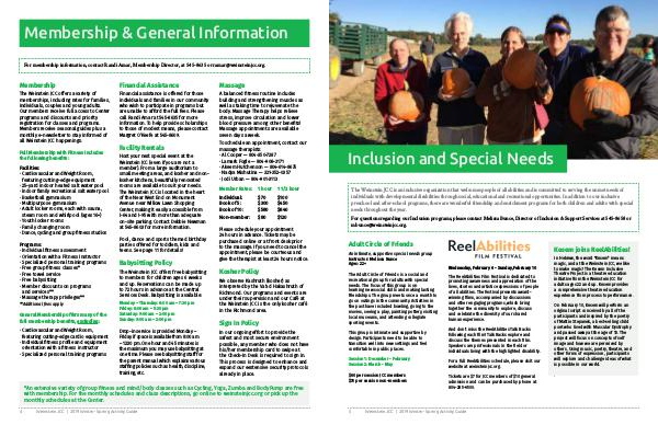 with membership. For the monthly schedules and class descriptions, go online to weinsteinjcc.org or pick up the