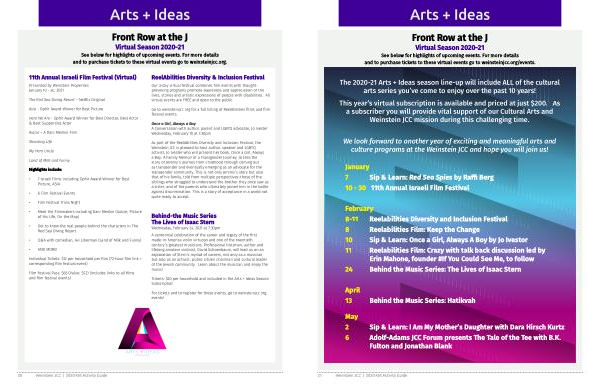 Virtual Season 2020-21 See below for highlights of upcoming events . For more details and to purchase tickets to these virtual events go to weinsteinjcc . org / events .