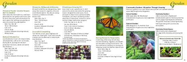 * There is no charge for the class but preregistration is required. Participants are expected to attend all Tuesday and Saturday sessions and work a shift at the Harmony Greenhouse plant sale in May.