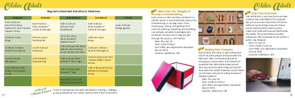 Each move is a life transition, whether to a smaller home, a new residential community, assisted living or nursing home. From downsizing, sorting, and getting rid of excess to packing, unpacking and resettling, you will gain valuable knowledge and a multitude of resources to help you get through the process. Jill Freeman Date: Thu, Apr 13 Time: 1:00 β 2:00 pm Cost: FREE, pre-registration requested Class #: SR14 Location: Gladstone, 105
