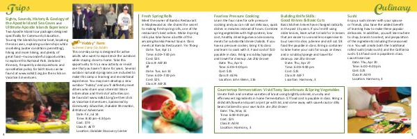 Enjoy a sushi dinner with your spouse or friends, plus have the added benefit of learning how to make these popular delicacies. In addition, you will learn where to shop, brands to select, and preparation of the ingredients including the seasoned rice. You will create both the traditional rolled sushi( maki-zushi) and the California sushi. $ 13 food cost is payable in class. Laurel Severson Date: Thu, Apr 20 Time: 6:00 – 9:00 pm Cost: $ 25 Class #: AEF3 Location: Harmony, 3