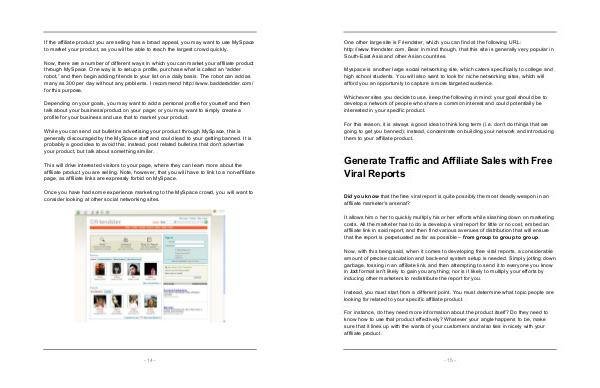 affiliate link in said report, and then find various avenues of distribution that will ensure