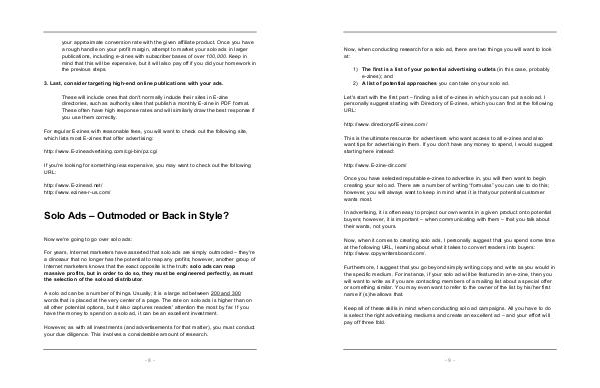 Furthermore, I suggest that you go beyond simply writing copy and write as you would in the specific medium. For instance, if your solo ad will be featured in an e-zine, then you will want to write as if you are contacting members of a mailing list about a special offer or something similar. You may even want to refer to the owner of the list by his / her first name if( s) he allows that.