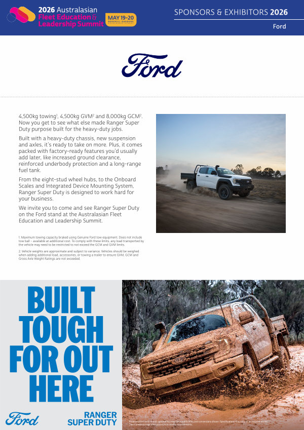 We invite you to come and see Ranger Super Duty on the Ford stand at the Australasian Fleet Education and Leadership Summit.