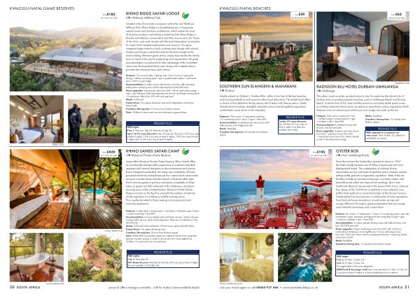 Transfers / driving time : 3½ hours from Durban airport . Note : Children 6 years and over are welcome on game drives .