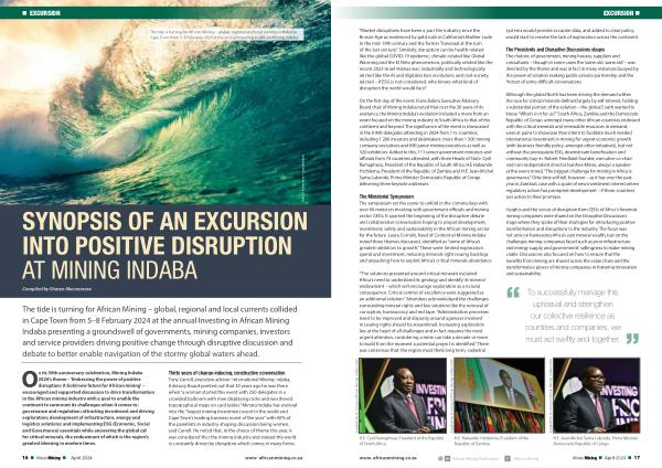 The Ministerial Symposium The symposium set the scene to unfold in the coming days with over 60 ministers meeting with government officials and mining sector CEOs . It sparked the beginning of the disruptive debate and collaborative conversation hoping to propel development , investment , safety and sustainability in the African mining sector for the future . Laura Cornish , head of Content at Mining Indaba noted three themes discussed , identified as “ some of Africa ’ s greatest inhibitors to growth .” These were : limited exploration spend and investment ; reducing minerals right issuing backlogs and unpacking how to exploit Africa ’ s critical minerals abundance .