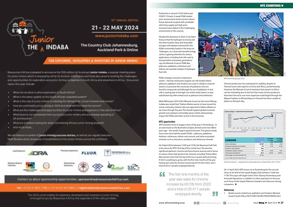 © MTE Supplied by Minerals Council South Africa FACTS AND FIGURES POCKETBOOK 2023 www . africanmining . co . za African Mining Publication African Mining African Mining • April 2024 • 27