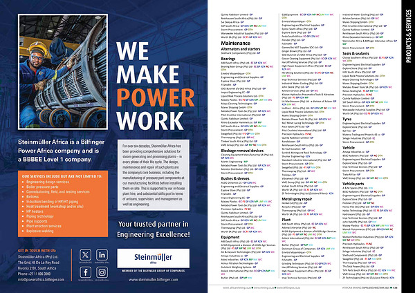 134 • AFRICAN MINING SUPPLIERS DIRECTORY 2025 www . africanmining . co . za • www . mining . co . za • www . MTEexpos . co . za