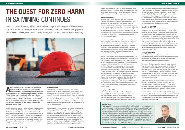 THE QUEST FOR ZERO HARM IN SA MINING CONTINUES