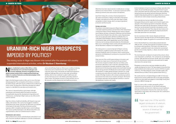 Niger was one of the world ' s largest producers of uranium , and its mines are a major source of revenue for the government . www . africanmining . co . za African Mining Publication African Mining African Mining • January 2025 • 17