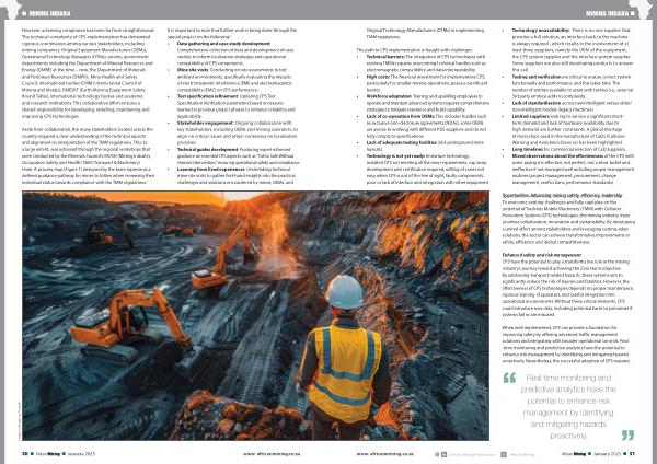 Real-time monitoring and predictive analytics have the potential to enhance risk management by identifying and mitigating hazards proactively . www . africanmining . co . za African Mining Publication African Mining African Mining • January 2025 • 31