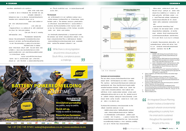 An Integrated Closure Planning System involves a fundamental approach wherein environmental safeguarding is a priority from the onset and is sustained throughout the operational lifecycle of the mine. www. africanmining. co. za African Mining Publication African Mining African Mining • January 2026 • 27