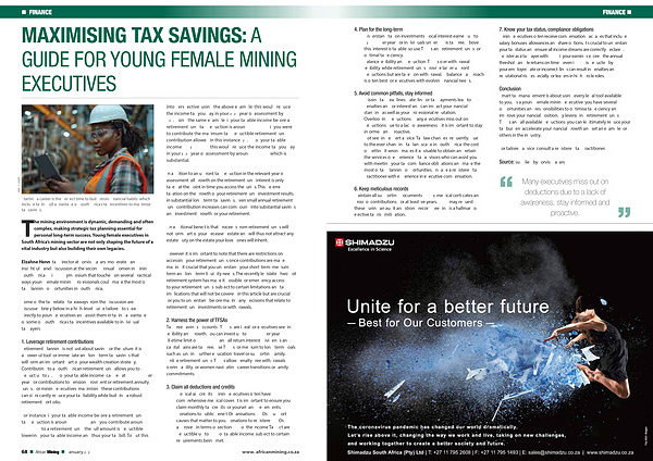 Many executives miss out on deductions due to a lack of awareness, stay informed and proactive. www. africanmining. co. za African Mining Publication African Mining African Mining • January 2026 • 69