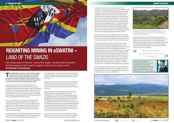 The mining sector in eSwatini – ‘ land of the Swazis ’– has been idle for decades , but there appears to be a spark to reignite mining in the country , writes Dr Nicolaas C Steenkamp .