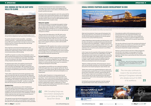 The mine also continues to invest in the recruitment and training of Congolese nationals , who already account for 95 % of its workforce . www . africanmining . co . za African Mining Publication African Mining African Mining • June 2023 • 7