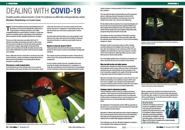 Despite positive advancements , Covid-19 continues to affect the mining industry , writes Nicolaas Steenkamp and Leon Louw .
