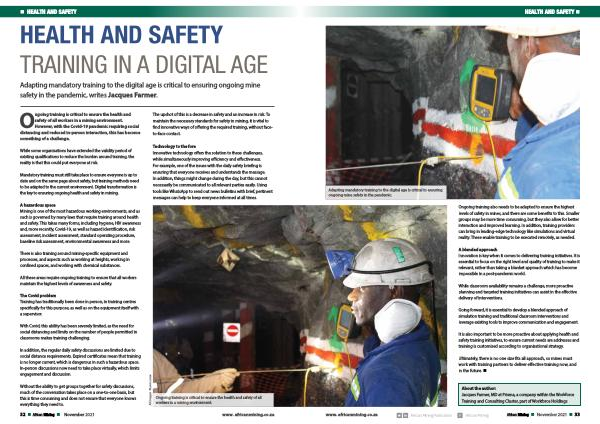 Adapting mandatory training to the digital age is critical to ensuring ongoing mine safety in the pandemic , writes Jacques Farmer .