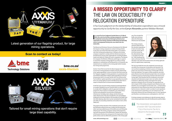In a recent Tax Court judgment handed down on 31 March 2023 , the costs incurred by a mining company for relocating a residential community and third-party infrastructure required for the mining company to effectively and optimally mine in its designated mining area , was ruled to be nondeductible .