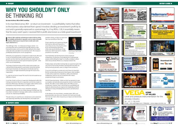 So yes , let ’ s not forget our rands-and-cents ; these are important . But let ’ s include proper frameworks that measure other variables as well , such as supervisor competency , safety , and employee engagement , when we set out to determine the value a programme brings to our business .