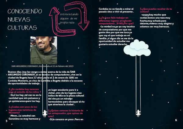 Buenos dias ,hoy les vengo a contar acerca de la vida de sair argumedo coronado ,el es tecnico de computadores ,vive en la ciudad de Bogota hace 27 años ,nacio el 3 de enero de 1981 en Cordoba Monteria ,se vino de Cordoba a Bogota debido a la escases de oportunidades de trabajo .