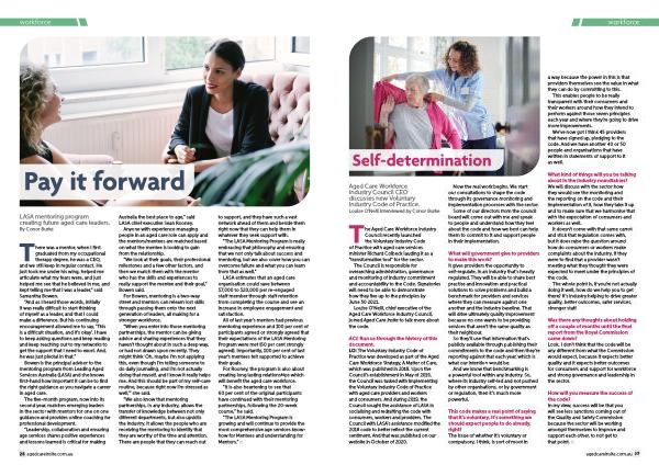 ACI : Run us through the history of this document . LO : The Voluntary Industry Code of Practice was developed as part of the Aged Care Workforce Strategy , A Matter of Care , which was published in 2018 . Upon the Council ’ s establishment in May of 2019 , the Council was tasked with implementing the Voluntary Industry Code of Practice with aged care providers and workers and consumers . And during 2019 , the Council sought the assistance of LASA in socialising and redrafting the code with consumers , workers and providers . The Council with LASA ’ s assistance modified the 2018 code to better reflect the current sentiment . And that was published on our website in October of 2020 .