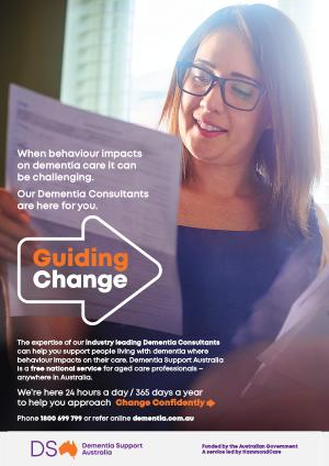 The expertise of our industry leading Dementia Consultants can help you support people living with dementia where behaviour impacts on their care . Dementia Support Australia is a free national service for aged care professionals – anywhere in Australia .