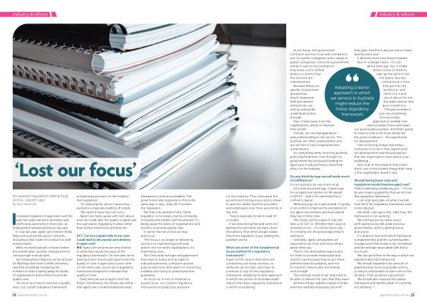 We should also reassess the quality framework and identify what it ’ s currently not working . ■ agedcareinsite . com . au 15