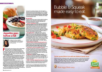 Try to include a source of protein with every meal. It is important to remember that muscle loss is a natural process that accompanies ageing. Recent research indicates that diets rich in protein, combined with resistance training can help minimise muscle wasting with ageing. Excellent sources of protein in the diet include meat, fish, poultry, dairy products, nuts, seeds, eggs and legumes such as baked beans. keep hydrated. Dehydration can lead to confusion, fluctuations in blood pressure and dizziness, increasing the risk of having a fall. Ideally, six to eight glasses of hydrating fluids should be consumed every day. This may include water, milk and non-dairy milk alternatives such as soy milk, smoothies, soup, fruit juices and cordial.