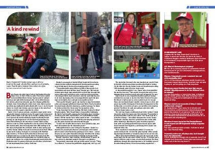 with a Sydney Swans scarf and cap. He needs a walking stick. He
