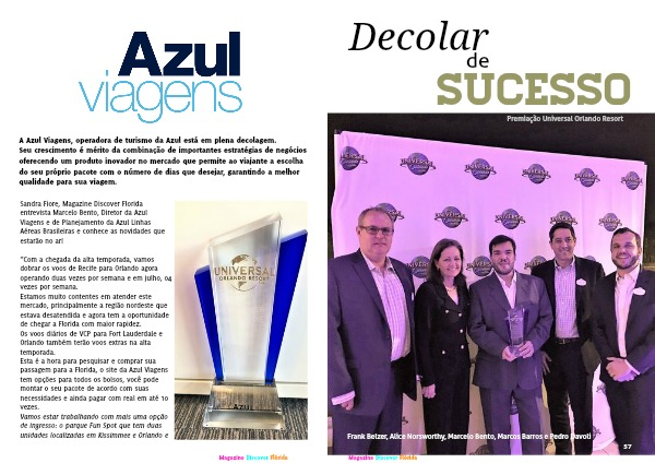Sandra Fiore, Magazine Discover Florida entrevista Marcelo Bento, Diretor da Azul Viagens e de Planejamento da Azul Linhas Aéreas Brasileiras e conhece as novidades que estarão no ar!
