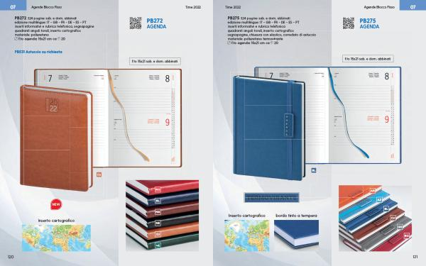PB272 324 pagine sab . e dom . abbinati edizione multilingue : IT - GB - FR - DE - ES - PT inserti informativi e rubrica telefonica , segnapagine quadranti angoli tondi , inserto cartografico materiale : poliuretano f . to agenda : 15x21 cm ca 20