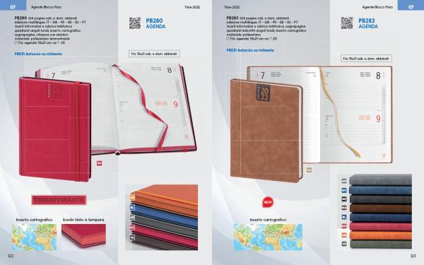 PB283 324 pagine sab . e dom . abbinati edizione multilingue : IT - GB - FR - DE - ES - PT inserti informativi e rubrica telefonica , segnapagine quadranti imbottiti angoli tondi , inserto cartografico materiale : poliuretano f . to agenda : 15x21 cm ca 20