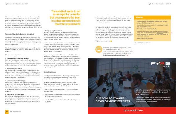 The architect needs to act as an expert or a mentor that accompanies the team in a development that will meet the requirements