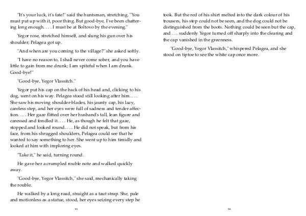 "Good-bye, Yegor Vlassitch," she said, mechanically taking