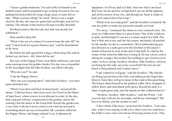 “Swallow, Swallow, little Swallow,” said the Prince, “will