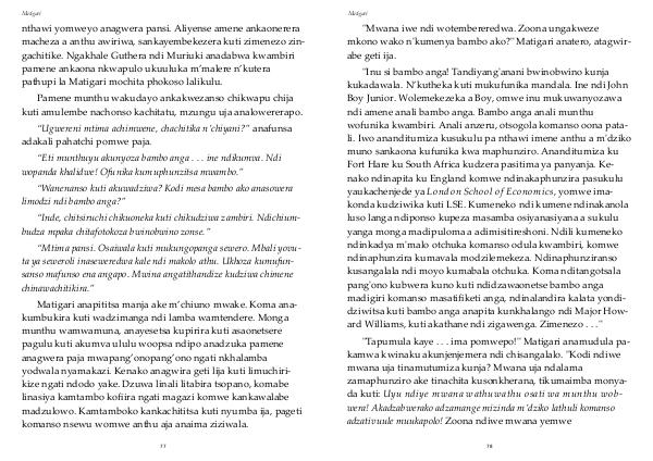 "Tapumula kaye . . . ima pomwepo!" Matigari anamudula pa-