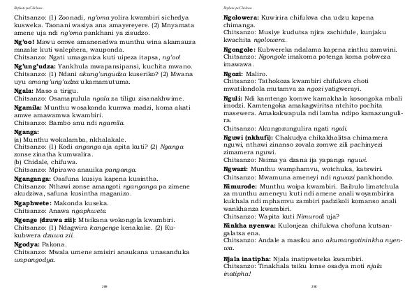 Chitsanzo: (1) Kodi anganga aja apita kuti? (2) Nganga